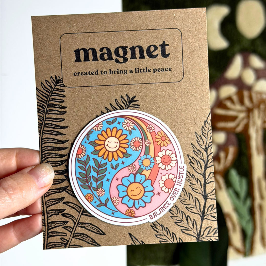 Balance over hustle. Because doing the most isn’t always the goal. This yin and yang magnet is a reminder to slow down and find your own rhythm.